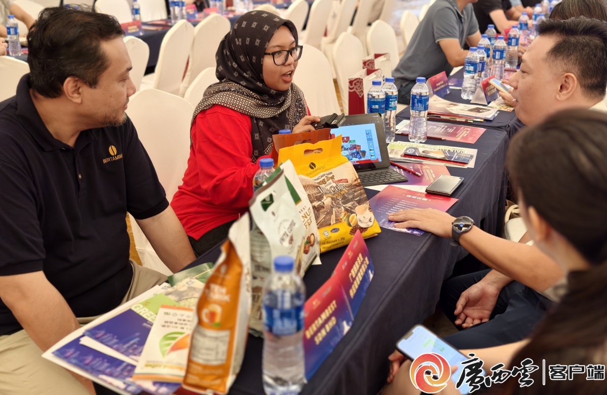 9月16日,助力中国—东盟博览会·2025年中马企业合作对接会(东南亚特色农产品专场)在南宁举行,企业家们携带样品洽谈业务。广西云-广西日报记者 孟振兴 摄