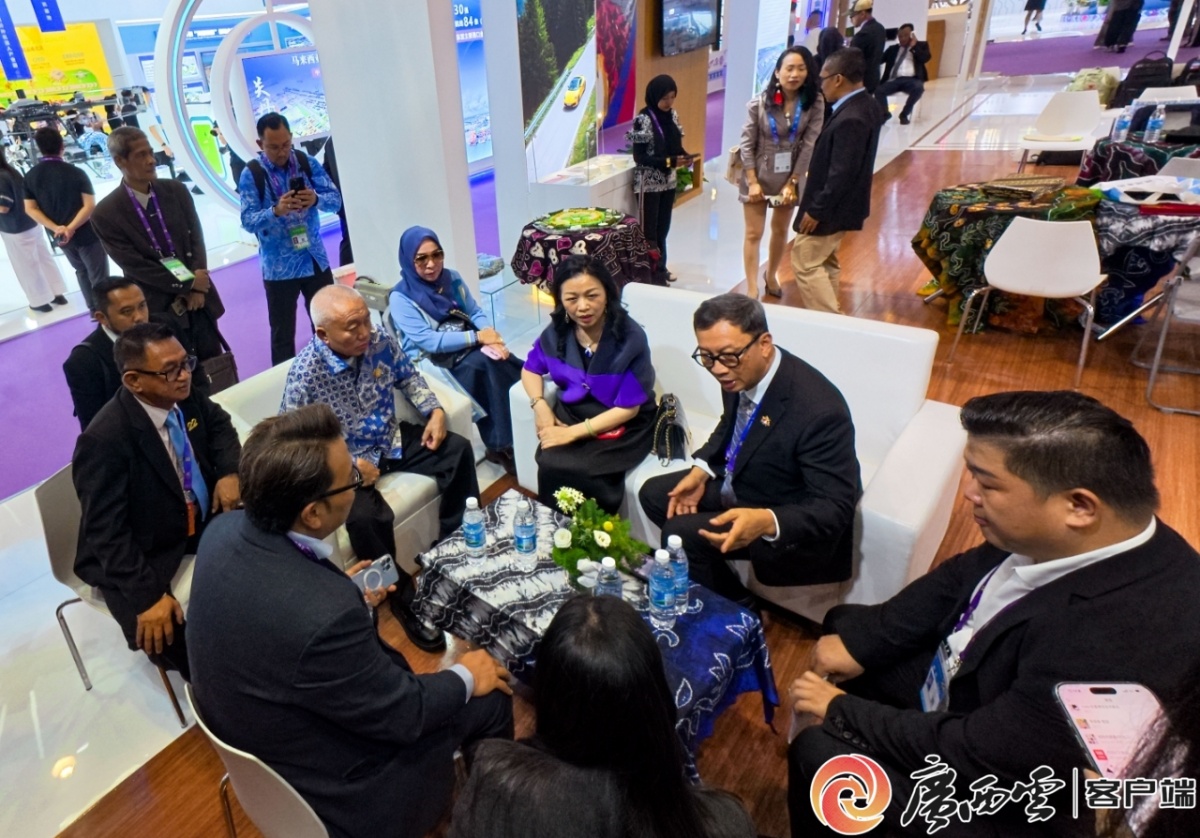 他们有备而来,惊艳亮相。润建股份有限公司在南宁国际会展中心人工智能专馆秀出多个AI行业模型,并于9月18日邀请各界嘉宾见证多款AI创新成果首发;马来西亚客商骆国忠带着自家企业研发的益生菌相关产品样品,在多个活动现场与各国客商相谈甚欢,“感谢主办方,让我们有了充足的展示机会。”