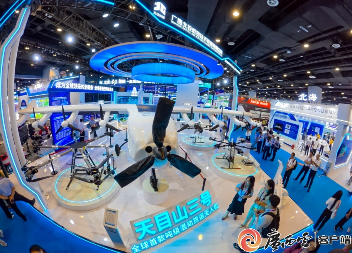全球首款吨级混动货运无人机天目山三号亮相第22届东博会。 广西云-广西日报记者 周军 摄