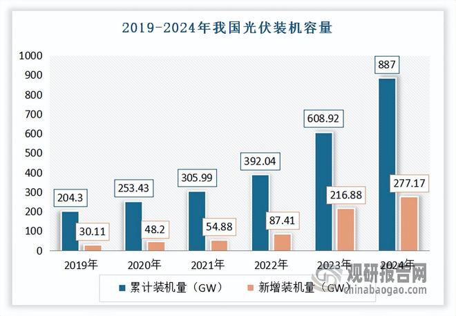 在政策引导和市场需求双轮驱动下,光伏已成功超越水电,跃居全国第二大电源。根据数据显示,2024年我国累计光伏装机容量已达887GW,与2023年底的609 GW相比,增长45.5%,占全部装机容量的26.5%,仅次于火电;其中新增装机容量达277.17GW,再创历史新高,同比增长28%。软磁铁氧体是光伏核心器件中的重要材料,光伏行业的快速发展将为软磁铁氧体材料带来巨大的市场需求和发展机遇。