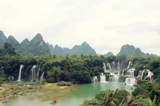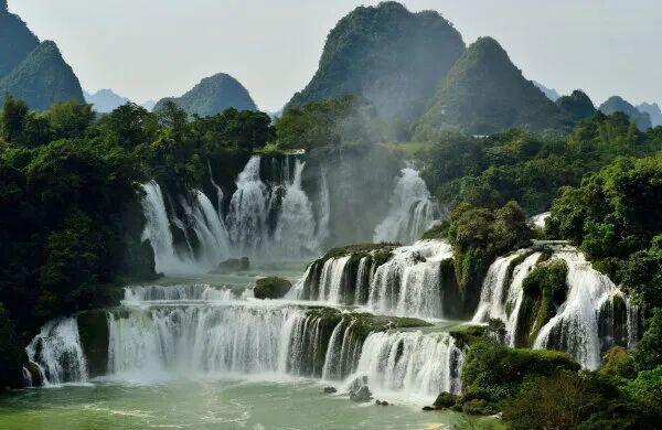 德天瀑布,位于广西壮族自治区崇左市大新县硕龙镇德天村,中国与越南边境处的归春河上游,瀑布气势磅礴、蔚为壮观,与紧邻的越南板约瀑布(“Bản Giốc & Đức Thiên”)相连,是亚洲第一、世界第四大跨国瀑布,年均水流量约为贵州黄果树瀑布的三倍,为中国国家AAAAA级旅游景区。
