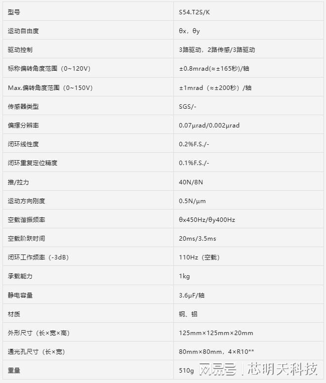 S54.T2系列是具有中心通孔的二维θxθy轴压电偏摆台,采用无摩擦柔性铰链结构设计,响应速度快、闭环定位精度高,80×80mm中心通孔使其易于集成在显微及扫描等光学系统中。